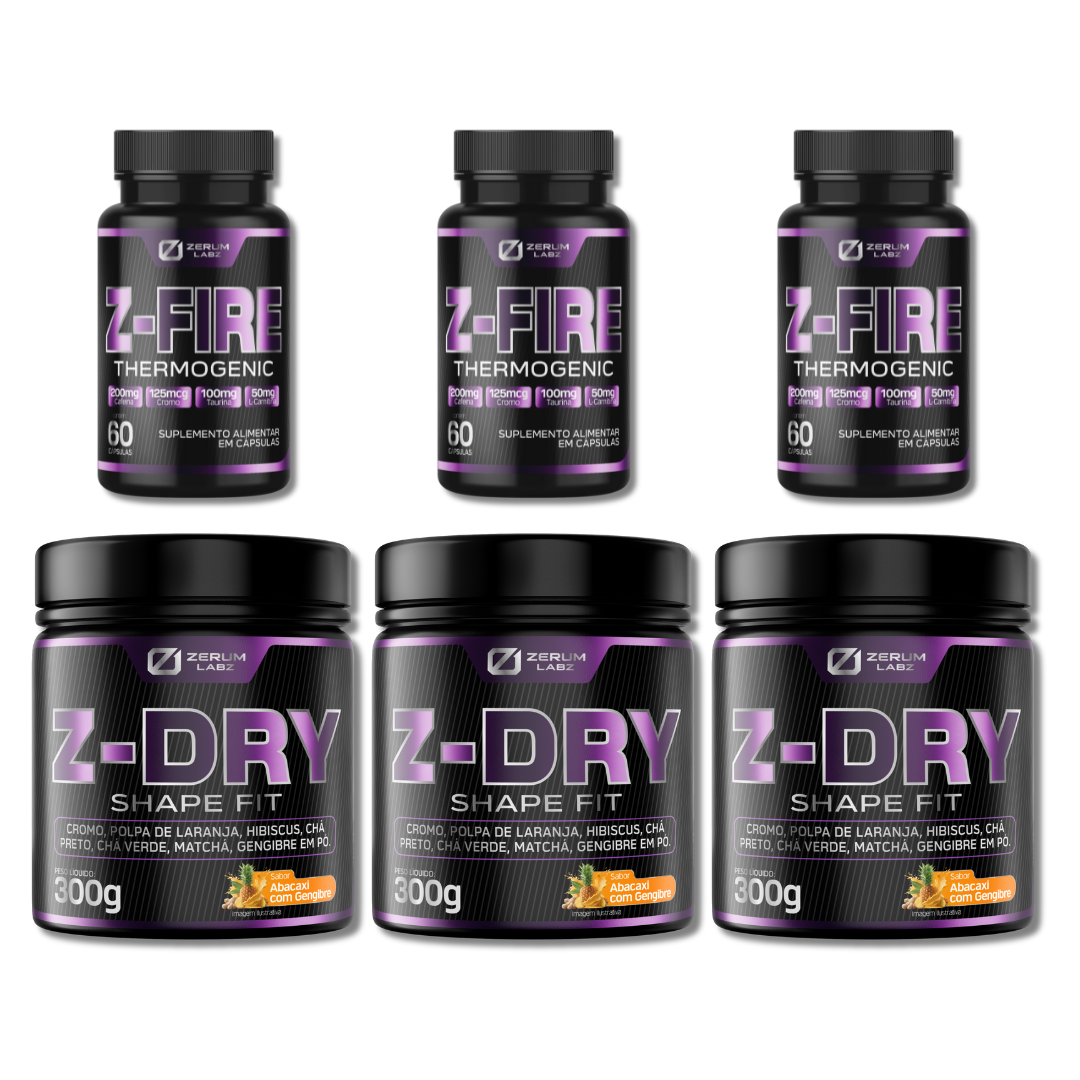 O ZERUM possui uma poderosa combinação capaz de aumentar a queima de gordura, diminuir a retenção de líquidos, melhorar o foco e controlar o apetite. Composto pelo termogênico Z-FIRE e o diurético Z-DRY o kit é elaboradorado cuidadosamente para propiciar um ambiente metábolico favóravel à queima de gordura controlando todos fatores que pode favorecer o ganho de peso.